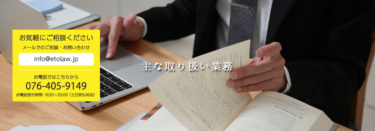 その他にも、労働問題、交通事故、刑事事件、一般民事事件等、幅広く対応しております。